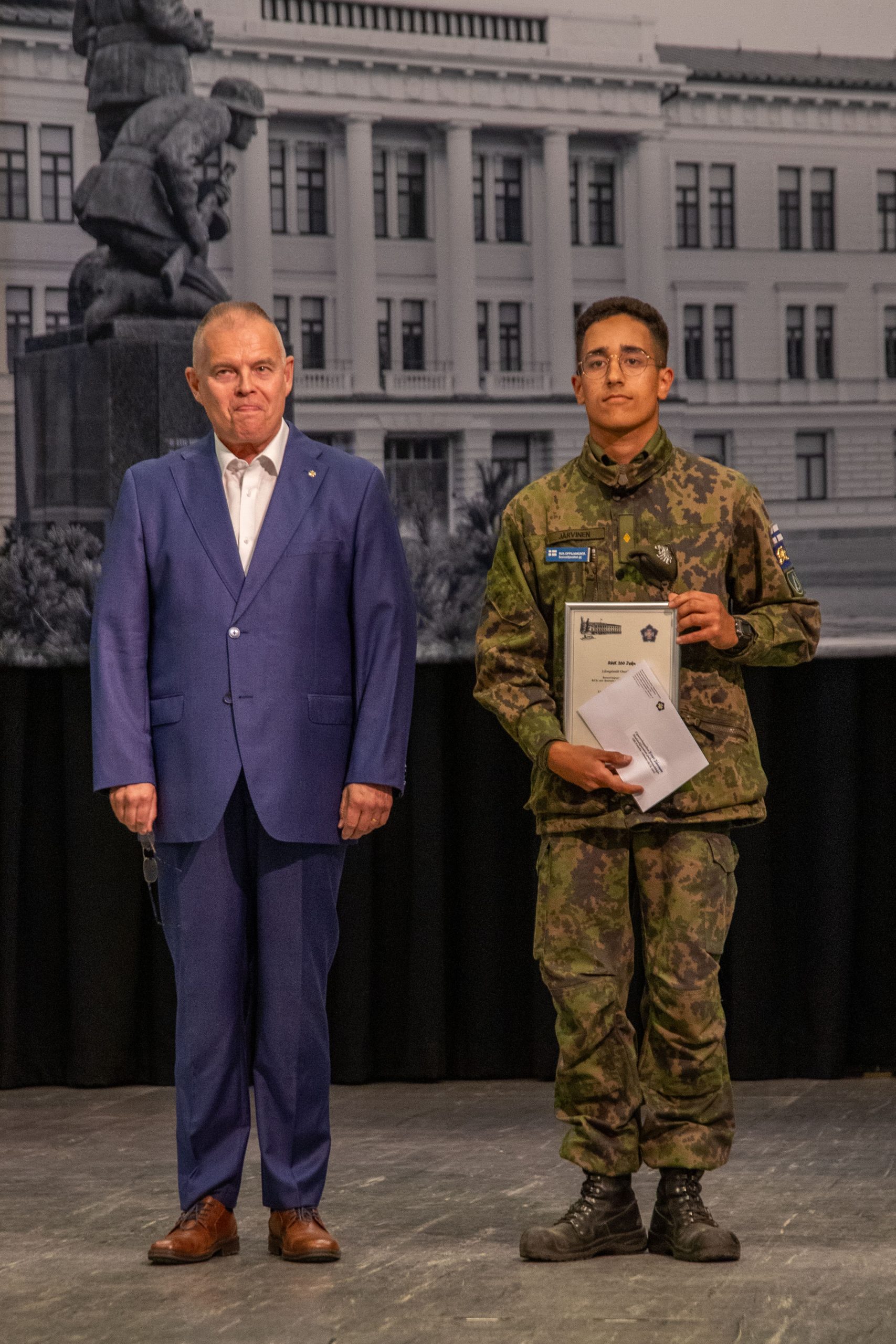 Kahdestoista stipendi kunniakirjoineen luovutettiin sosiaalijaoston puheenjohtajalle, upseerioppilas/-kokelas Yosri Järviselle. Kokelas Järvinen on tehnyt erityisen hyvää työtä mm. koko oppilaskunnan yhteenkuuluvuuden ja sen kautta työtehon tiivistämisessä. Kokelas Järvinen tuki aktiivisesti myös muita oppilaskunnan jaostoja.