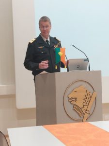 Ennen illallista saaren korkein sotilaskomentaja, Gotlands Regemente P18 komentaja, eversti Dan Rasmussen piti retkeläisille luennon Gotlannin strategisesta merkityksestä ja puolustusvoimista sekä Ruotsin yleisestä turvallisuustilanteesta.