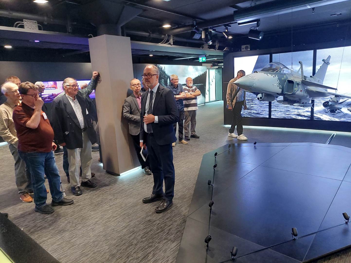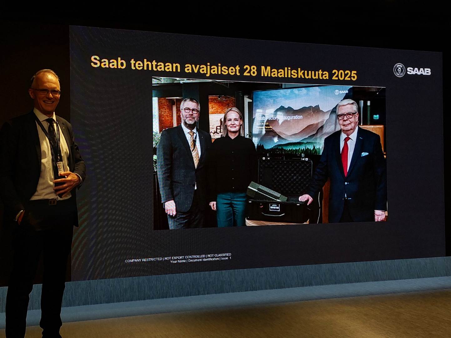 Yhtiöllä on myös Suomessa korkeaa teknologiaa kehittävä SAAB-teknologiakeskus Tampereella, joka perustettiin v. 2018, ja jossa on jo yli 200 henkilöä töissä rekrytointien yhä jatkuessa. Meille näytettiin kuva viime talvena avatun uuden toimitalon vihkiäisistä, jossa kuvassa kurssitoverimme Kalervo Kummola esiintyi Tampereen pormestarin ominaisuudessa.